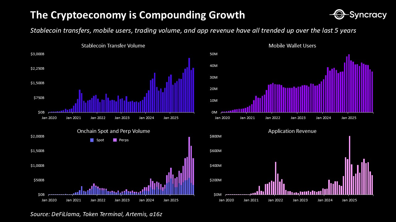 Growth across the cryptoeconomy is transitioning from cyclical to secular, with the industry having produced a handful of valuable use cases beyond Bitcoin